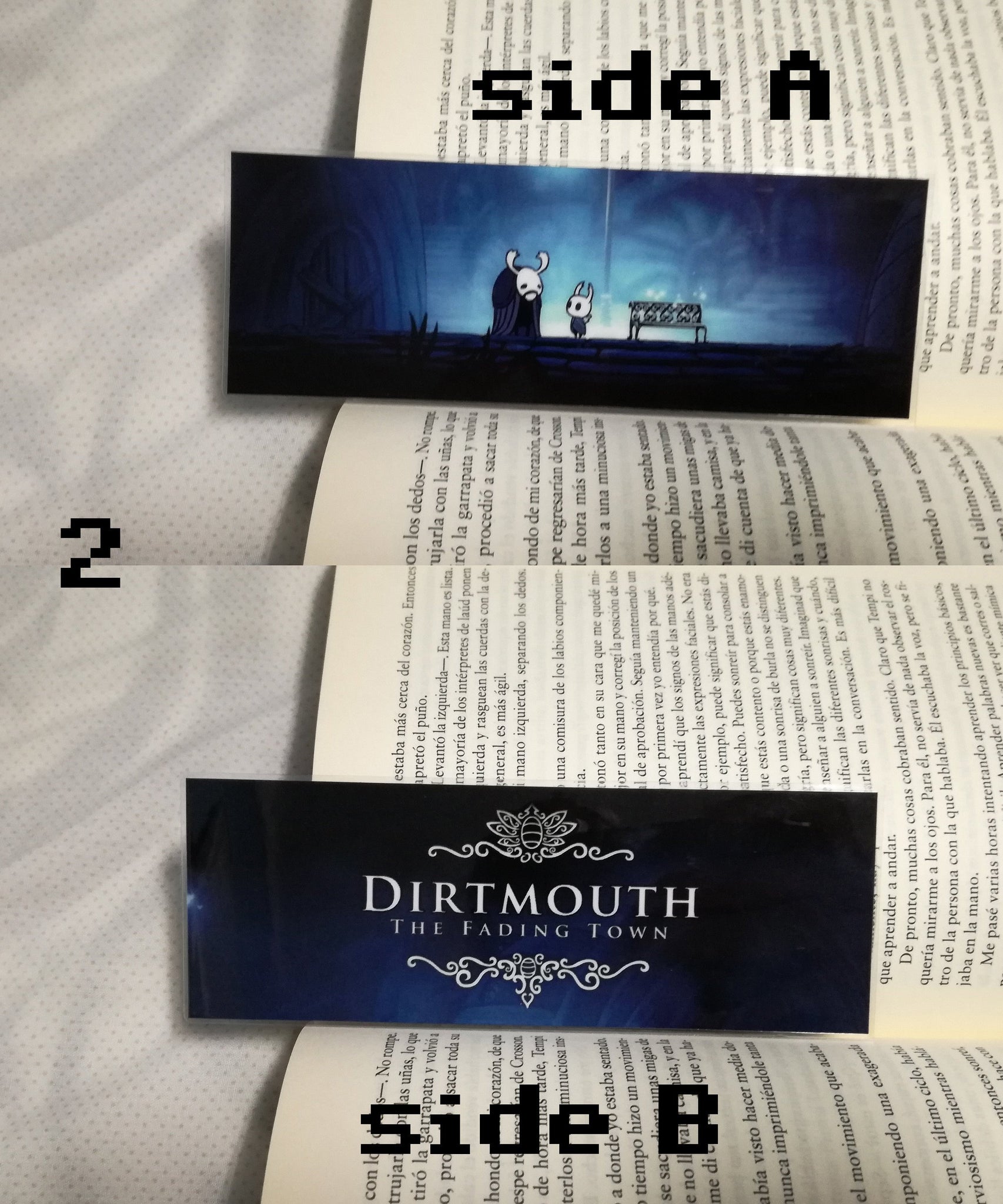 High quality bookmarks laminated with 125 m hard plastic inspired by Hollow Knight video game.