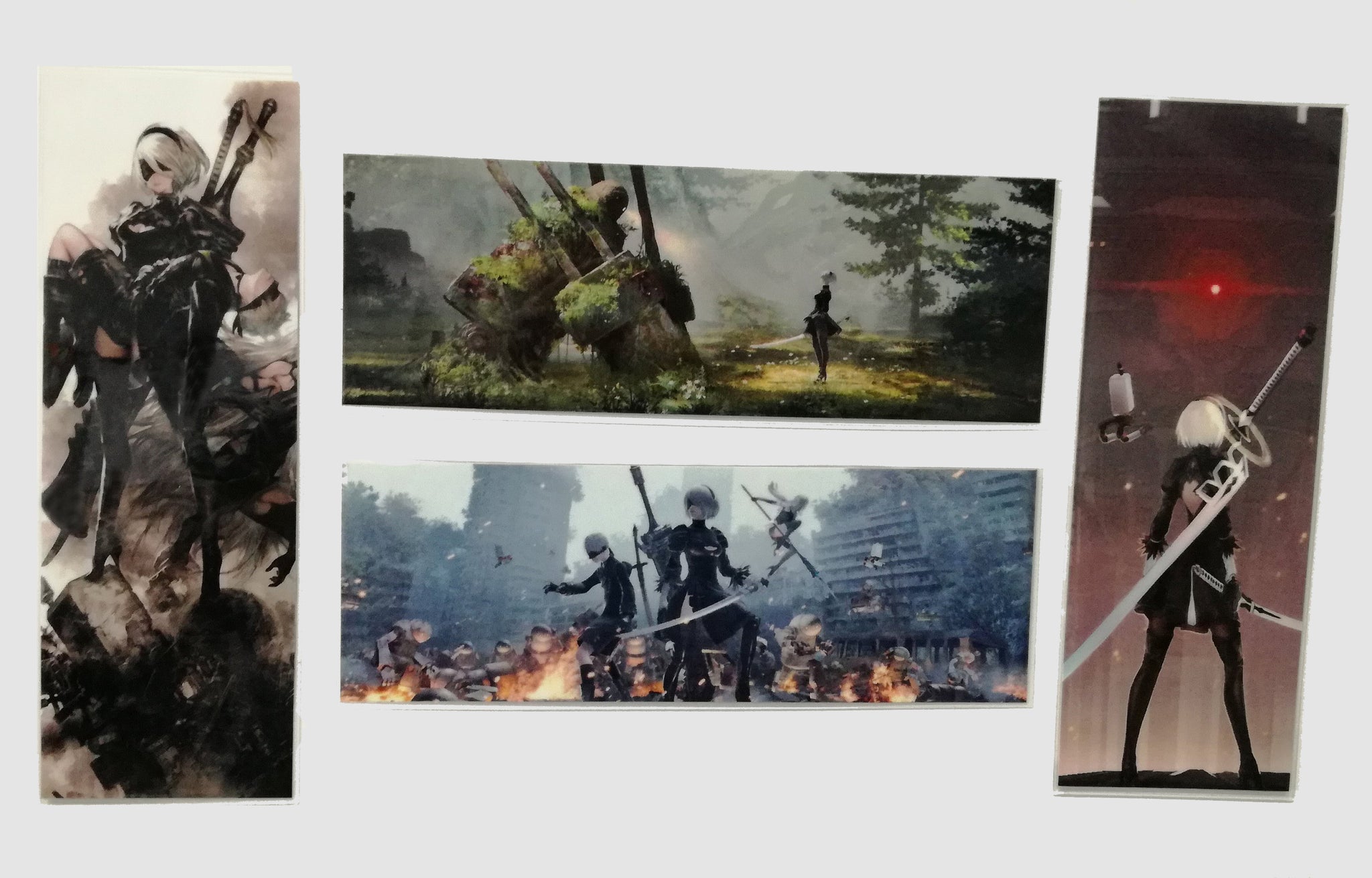 High quality bookmarks laminated with 125 m hard plastic inspired by Nier Automata video game.